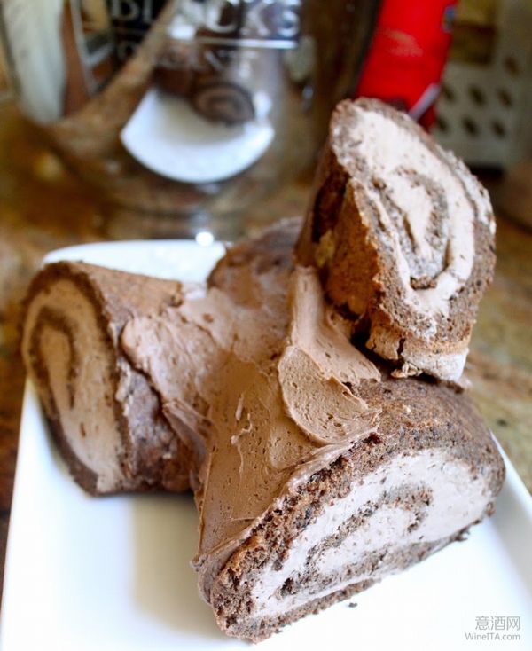 10.最后再将巧克力酱涂满在蛋糕外皮即可,注意涂抹的时候不需要太过均匀,这样才能出现树桩的效果。