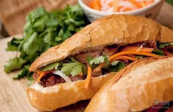 风味复杂的三明治,如越南三明治banh mi,用小麦简单加工,搭配上多种多样的食材,譬如熟猪肉、肉酱、胡萝卜、胡荽叶和黄瓜等蔬菜,将这些食材填入两片松软酥脆的法式面包里。越南三明治由于调料较多,口感丰富,如同中国菜,选起酒来更有挑战性,试试干型雷司令,动人的黑比诺都很好。