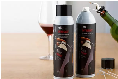 私人储藏喷雾(Private Reserve Spray)可以喷出一些混合惰性气体,如氮气、二氧化碳和氩气等,它们比空气要重,因此将其喷入开瓶后的酒瓶中,可以将空气挤出,盖上瓶塞后就可以防止葡萄酒氧化,同时将其寿命延长 2-3 天。而且这种方法简单而又方便,一罐惰性气体有时候可以使用上百次。
