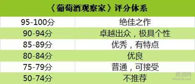 (1)《葡萄酒观察家》采取 100 分制,起始分为 50 分,共分为 6 个档次。