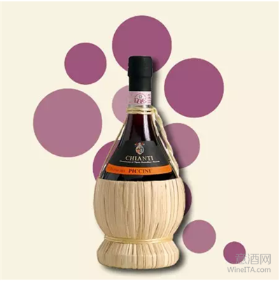 独一无二的基安蒂瓶(圆身、凸底、还有草篮在外部装饰),意大利人称之为Fiasco。基安蒂葡萄酒产自意大利的托斯卡纳,如今大部分的基安蒂葡萄酒已经转为使用标准的波尔多酒瓶,但是曾几何时这种基安蒂瓶才是基安蒂葡萄酒的标志。