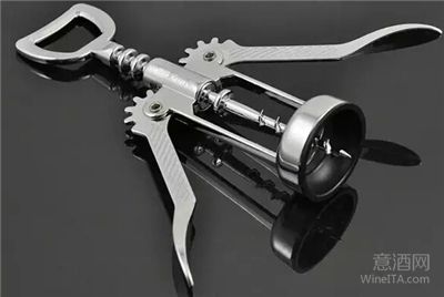 蝶形开瓶器:有 2 个带齿轮的把手,开瓶时将螺丝锥旋入,再把两边升起的把手往下按,利用杠杆定理即可轻松将酒塞拔出。