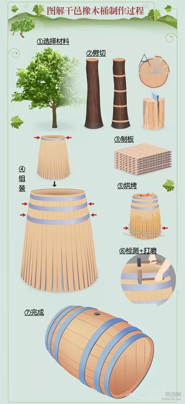 用来制作葡萄酒橡木桶的栎树需要 150-250 年生长周期,待长成直径 1-1.5 米,30-36 米高才算达到标准。制作橡木桶时通常只取腰部 6-15 米处。