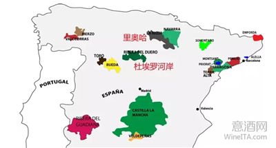 杜埃罗河岸位于卡斯蒂利亚-莱昂(Castilla y Leon)自治区内,距离里奥哈产区不到 100 公里远,该产区沿着杜埃罗河(Rio Duero)的流向从索里亚省(Soria)向西流经布尔戈斯省(Burgos),再延伸至巴利亚多利德(Valladolid)。该产区位于杜埃罗河的两岸,全长 115 公里,宽 35 公里。