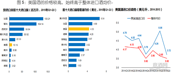 最后,就是价格问题了。美国是中国第六大葡萄酒进口国,但在前十大进口来源国中,其价格却排在第四。并且其均价始终高于整体均价。