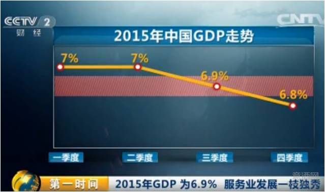 2015年一季度二季度GDP为7%,三季度为6.9%,四季度为6.8%,最终全年GDP定格在6.9%的区间。