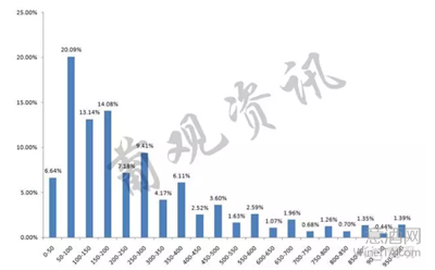 在全网0-200元商品中,与上周相比,报价占比最高区间为90-100元,为9.26%,销量下降0.11%。