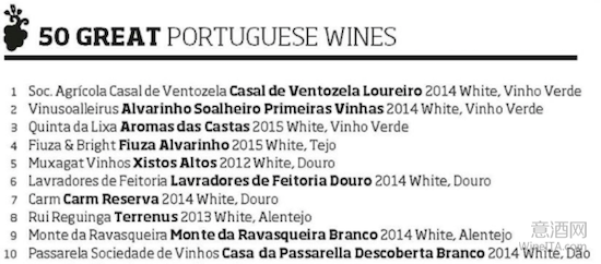 2016年,三位侍酒大师Dennis Kelly, Peter Granoff 和 Madeline Triffon 从葡萄牙近400款参赛葡萄酒中,选出了50款最佳葡萄牙葡萄酒,对于想尝试葡萄牙佳酿,又不知从何入手的爱好者而言,无疑是一份难得的推荐指南。