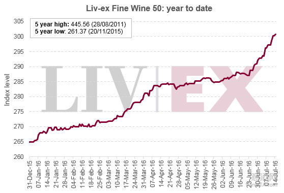 本周的交易价值和数量均有所下跌,但优质葡萄酒50指数仍保持势头,处于2013年11月以来的最高水平,收于300.79点,比上周上升1.6%。
