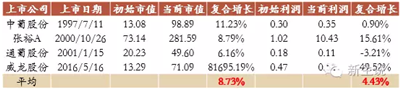 如果把上市以来市值和净利润年复合增长率高于10%作为一个衡量的指标,我们发现白酒行业中有5家,分别为泸州老窖、五粮液、贵州茅台、老白干酒和洋河股份,在13家2014年之前上市的公司中,占比达到38.46%。黄酒行业中有1家,占比为50%;而啤酒和葡萄酒行业中一家也没有,占比分别为0%。也就是说黄酒和白酒出现牛股的概率都在38%以上,而啤酒和葡萄酒所有上市公司从来没有出现过牛股。
