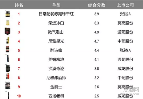 下面就是大家期待已久的A股葡萄酒上市公司十大单品排名,良心出品。