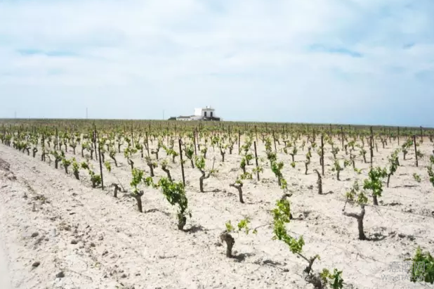 赫雷斯缓坡上的葡萄园,可以看到白色的 Albariza 土壤