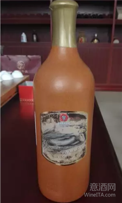 (这款希腊葡萄酒瓶身为陶瓷而非一般的玻璃瓶)