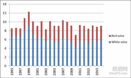 德国作为世界上最大的葡萄酒进口国,虽然进口额仅次于美国和英国,但根据2016年的葡萄采摘量,德国2017年白葡萄酒产量将增加7%,而红葡萄酒产量则会减少3%。