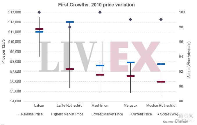 上周,Liv-ex探讨了自发布以来表现最佳和最差的2010年份波尔多葡萄酒。 在十款表现最差的葡萄酒中,有两款属一级酒庄,它们是木桐Mouton和拉菲Lafite Rothschild。