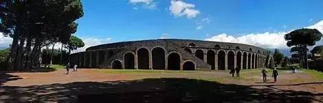 公元79年被维苏威火山喷发的火山灰所掩埋,直至1750年,随着庞贝遗址的被发掘而逐渐重见天日,整体保持完好。剧场位于庞贝古城的东南角,一方面是为了避开繁华的居民区,尽量减少对市民日常生活的打扰;另一方面则是要利用此处既有的城墙,以降低建造成本。同罗马斗兽场不同,庞贝圆形剧场没有地下空间,所以人们推测,这里的角斗竞技更多地以角斗士互搏为主。
