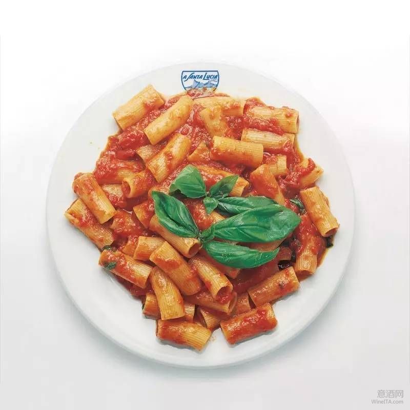 基本菜式“花式意面”,拌炒山地小西红柿、罗勒、辣椒,是佛朗哥·帕伦蒂设计的食谱,他是“a Santa Lucia”餐厅的老顾客。