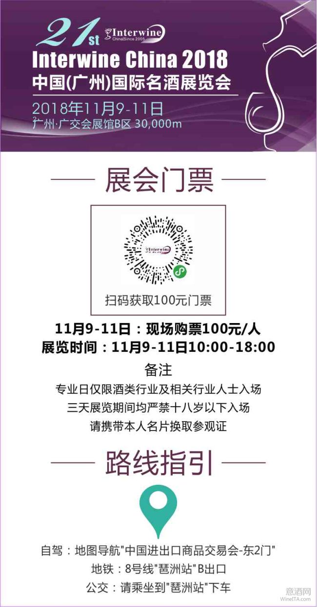 第21届Interwine展会将于2018年11月9日-11日(周五—周日)在广州广交会展馆B区9.3&10.3&11.3号馆盛大举行。更多信息,请访问展会官网:www.interwine.org。或在微信平台上搜索“科通名酒展”,获取更多展会新闻和最新资讯。