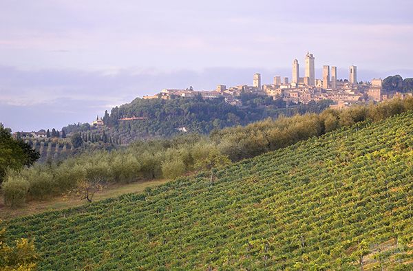 法定葡萄品种维娜恰(Vernacia)葡萄在圣吉米尼亚诺(San Gimignano)酿造出别具特色的葡萄酒与这里的地域风土息息相关。