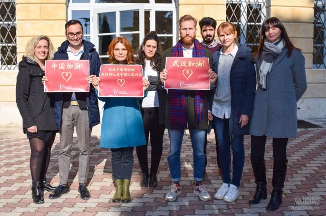 瓦波利切拉产区协会在得知中国的疫情之后,一直保持着密切的关注。协会工作人员专门将团队的问候写成中文,并中国红背景打印出来,与团队合影一道发来。