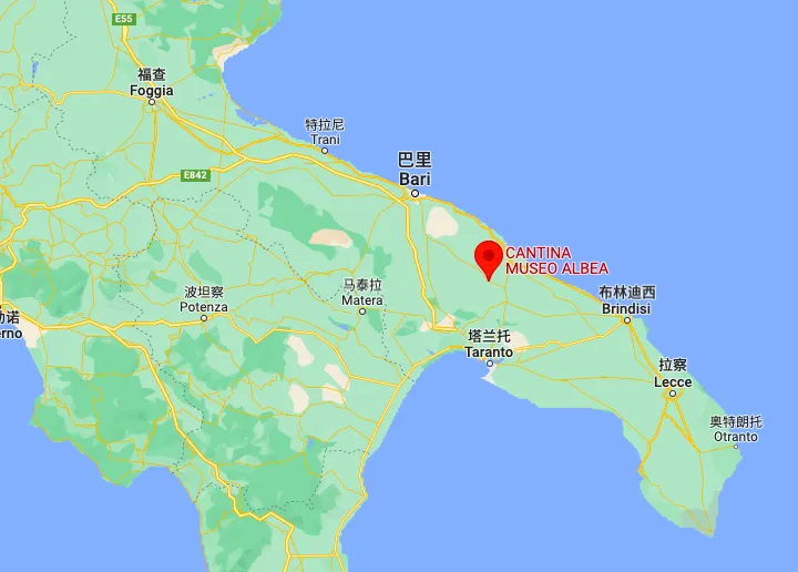意酒网专程连线了位于普利亚大区中部的阿尔贝亚(Albea)酒庄。Albea酒庄位于知名旅游胜地阿尔贝罗贝洛(Alberobello),大约在曼都里亚以北约64公里,在首府巴里(Bari)以南约55公里。这里种植着普利米迪沃(Primitivo)、黑托雅(Nero di Troia)和黑曼罗(Negroamaro)等红葡萄,也是维黛卡(Verdeca)等白葡萄品种的理想生长地。