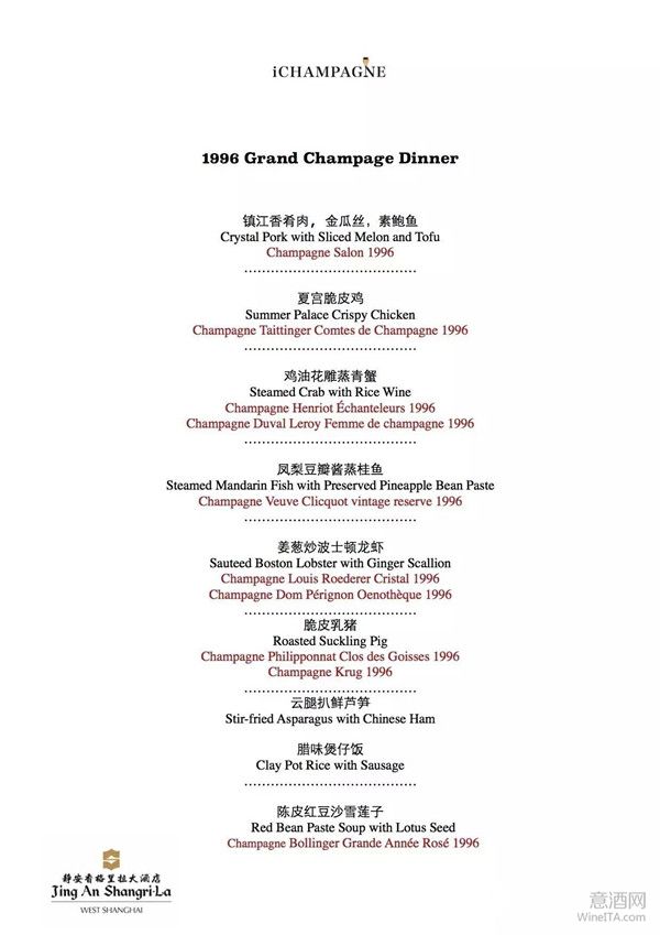 我精心挑选了10款1996年份顶级品质的香槟,跟上海静安香格里拉的首席侍酒师合作这次1996 Grand Champagne的晚宴,跟大家一起品味1996!传奇年份1996,一起一探究竟!