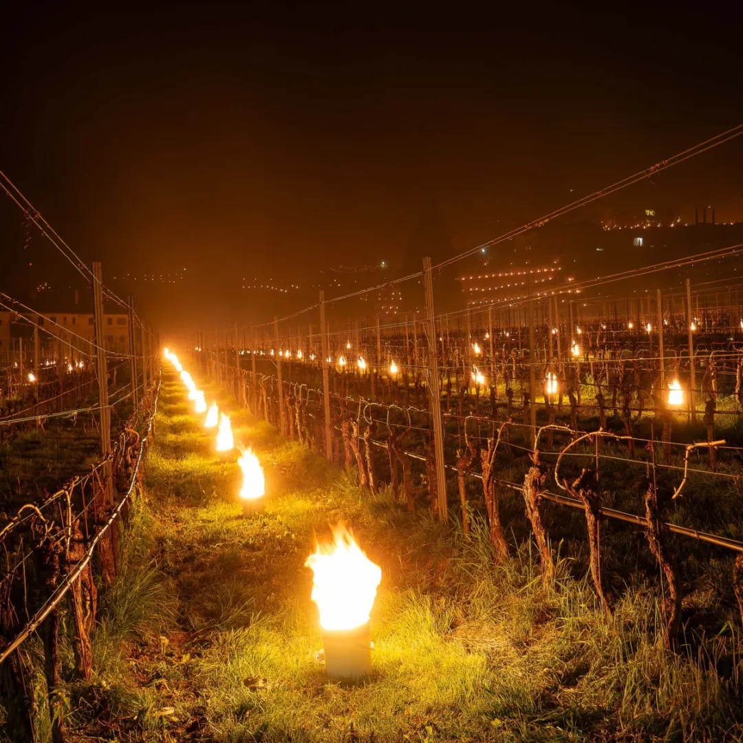 北部地区在今年年初遭遇高温。根据 Isac CNR 数据,意大利北部气温比历史平均水平高出2.2摄氏度,但四月末气温骤降,使农作物面临霜冻的风险。在北部地区,特伦蒂诺上阿迪杰(Trentino-Alto Adige)的乡村情况最为危急。上阿迪杰的葡萄藤在早春时节已经进入发芽期,但由于气温突然降至零下,为了保证葡萄藤的正常发育,酒庄纷纷为葡萄园采取各种保温措施。上阿迪杰地区醉古老的酒庄之一Abbazia di Novacella在成排的葡萄藤间放置点燃的蜡烛,以保护植株免受霜冻的伤害。