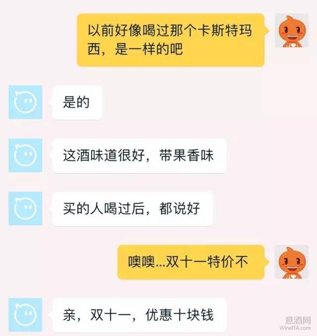 可是等我下单后,把图片发给懂葡萄酒的朋友堂哥,却换来了一顿嘲笑,他告诉我,我买到的都是些“山寨酒”“傍名牌酒”,还说我是个贪小便宜的人,怎么会在淘宝上购买葡萄酒呢?面对朋友的嘲笑,我真是又羞又气,我作为标准的双十一剁手党,就只是想在打折的季节趁便宜多买点酒,可是现在我只想着把淘宝卖假酒的腿打折.....