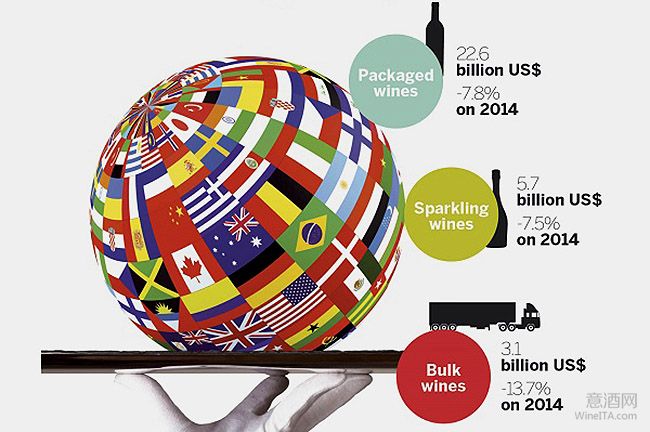 Integrating multi data resources on global wine market in 2015, WineITa.com completed a data analyzing report on global wine trade in 2015., sharing with our readers. The report includes bottled wine, bulk wine and sparkling wine.