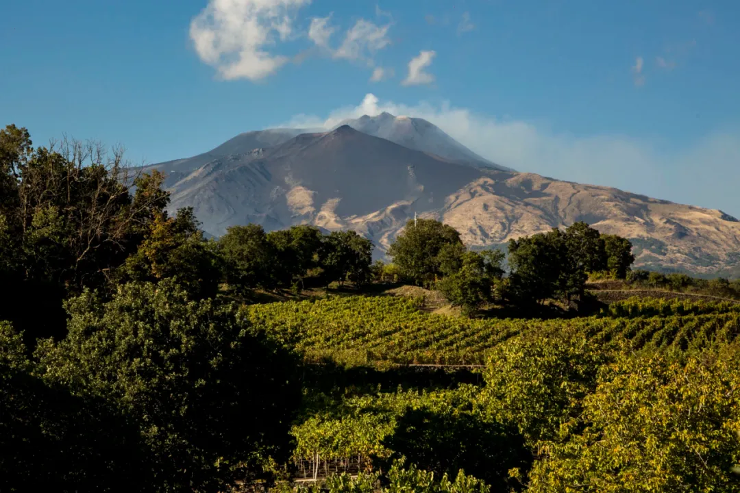 埃特纳法定产区(Etna DOC)成立于1968 年,是西西里岛醉早确立的葡萄酒法定产区,也是意大利负有盛名的火山葡萄酒产区。欧洲醉大的活火山埃特纳(Etna)给产区带来复杂、多变的风土,目前产区内葡萄园面积约1500公顷,分布在20个市镇和133 个 Contrada(单一园),从埃特纳火山地区一直延伸到沿海区域。如今,埃特纳法定产区葡萄酒保护协会拥有 220 家葡萄酒庄,年均产量为 600 万瓶,占该地区葡萄酒总产量的90%,其中 60% 用于出口,主要出口市场包括美国、加拿大、瑞士和英国。